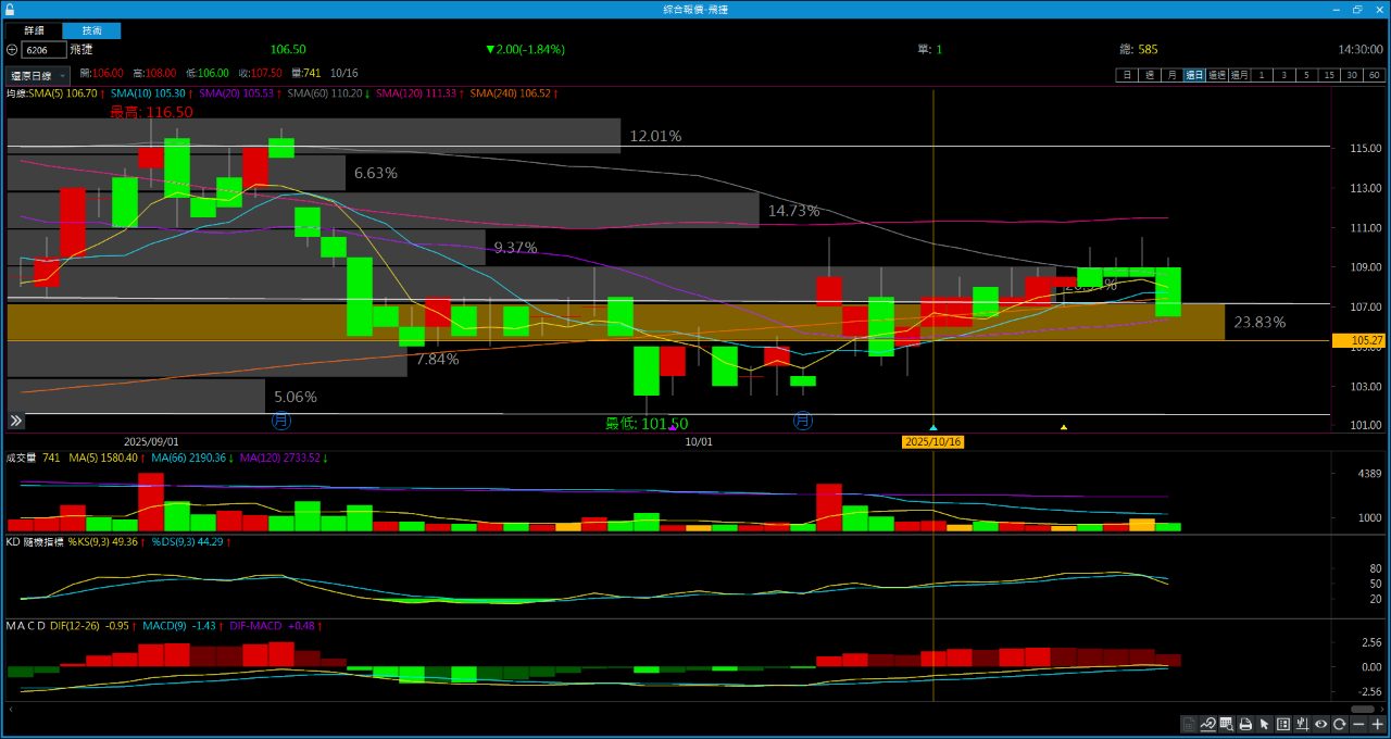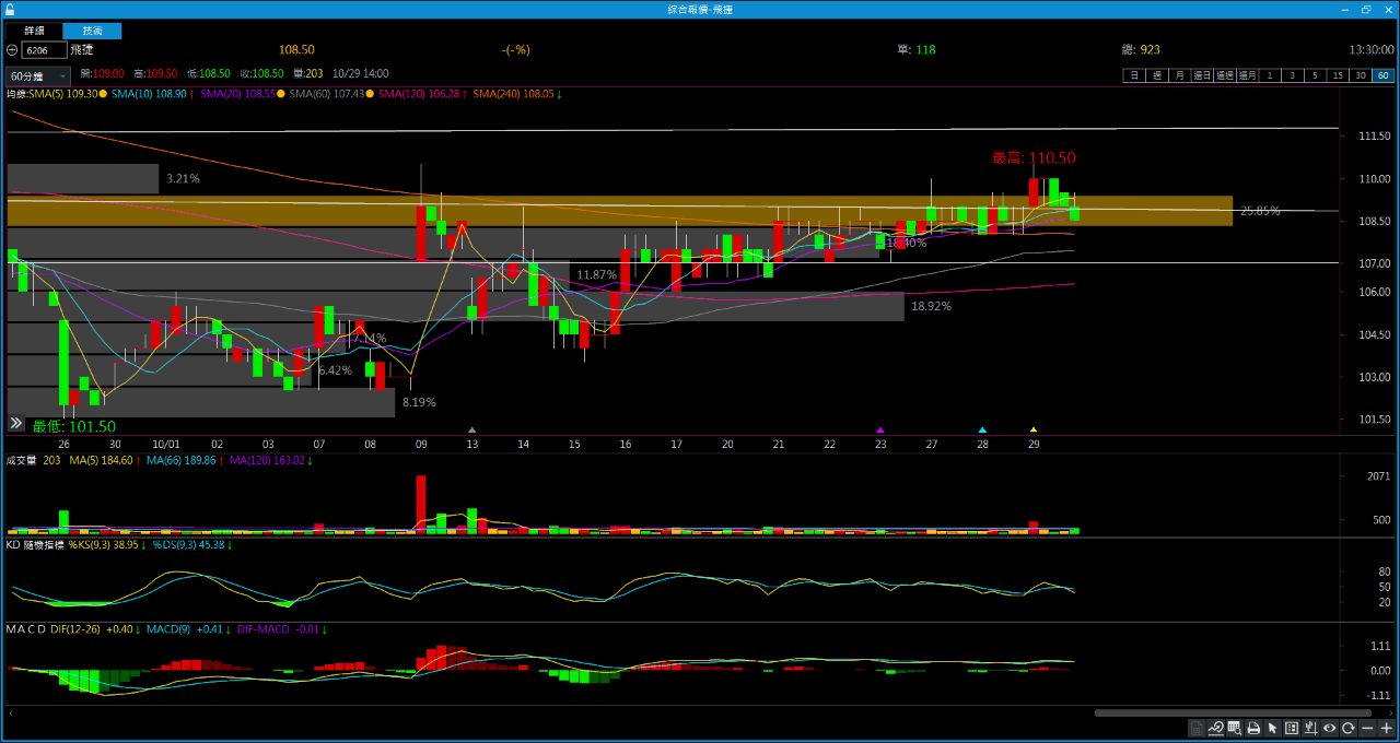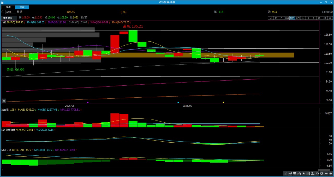飛捷可以當作回測105這裡,這邊可以再進場,一樣不要太樂觀操作,可以慢慢玩