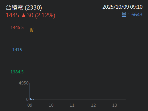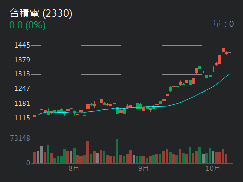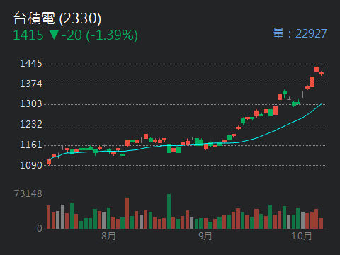 近期台積電股價持續走強,突破了1400元大關。雖然8日因美股回檔外資連續兩天賣超,但股價抗跌,最終小跌1.39%,收在1415元。