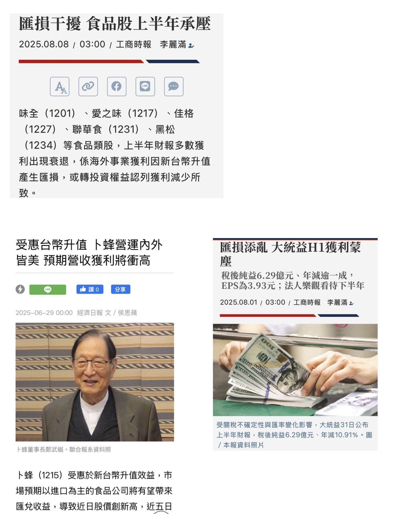 以下針對卜蜂、統一、聯華、聯華食、大統益進行解析